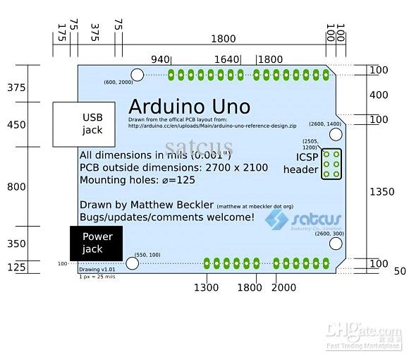 Panjang maksimum dan lebar PCB Uno masing-masing adalah 2,7 dan 2,1
